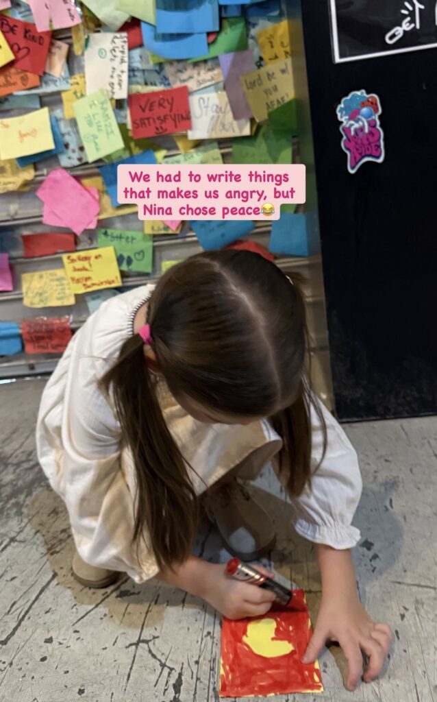 Megjithatë, vajza e saj, Nina, ka zgjedhur të ndajë një mesazh paqeje, duke ngjyrosur një zemër, si simbol i qetësisë dhe dashurisë.
