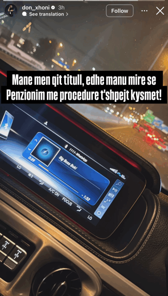“Mane men gititull, edhe manu mirë se penzionim me procedurë t’shpejt kysmet!”, ka shkruar ai në Instagram, duke iu referuar këngës “Big Boss Boki”.