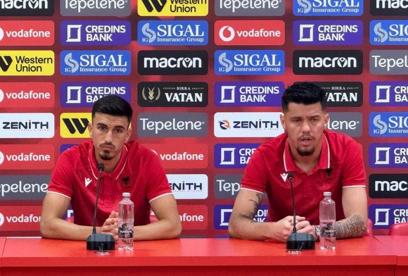 TIRANE – Juljan Shehu dhe Mirlind Daku dolën sot në konferencë për shtyp nga stadiumi “Air Albania”, në prag të sfidës së rëndësishme Shqipëri – Letoni, e vlefshme për kualifikueset e Botërorit 2026.
