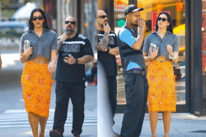 Ajo kishte veshur një fund të gjatë portokalli nga Gucci, të kombinuar…